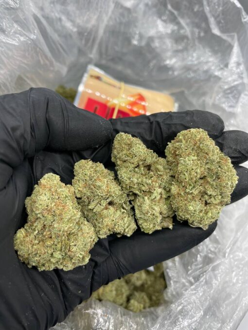 The buds of this strain are generally forest-green with bright orange pistils for contrast. The strain’s buds will range in size from small to medium and often cling together due to its stickiness. With an icy coat on each leaf, it provides insight into the heavy THC content which averages around 20%. The aroma of this strain is known to be skunky, piney, diesel-like, with undertones of citrus. When burning, this strain is known to burn with a harsh smoke that may irritate the lungs and induce coughing fits. The smoke will taste both piney and skunky.